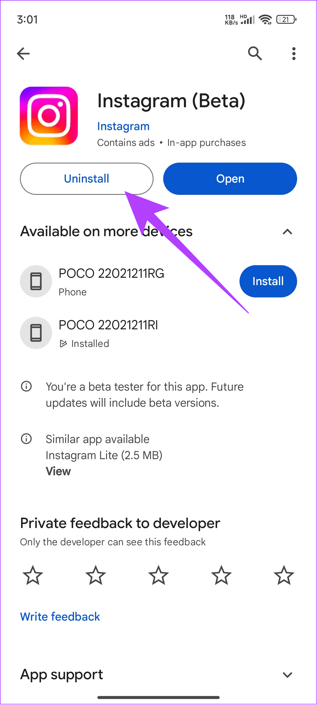 某些文件可能会阻止 GIF 在 Instagram 上运行。卸载 Instagram 可以解决此问题。请按照以下步骤在 Android 和 iPhone 上卸载该应用程序。