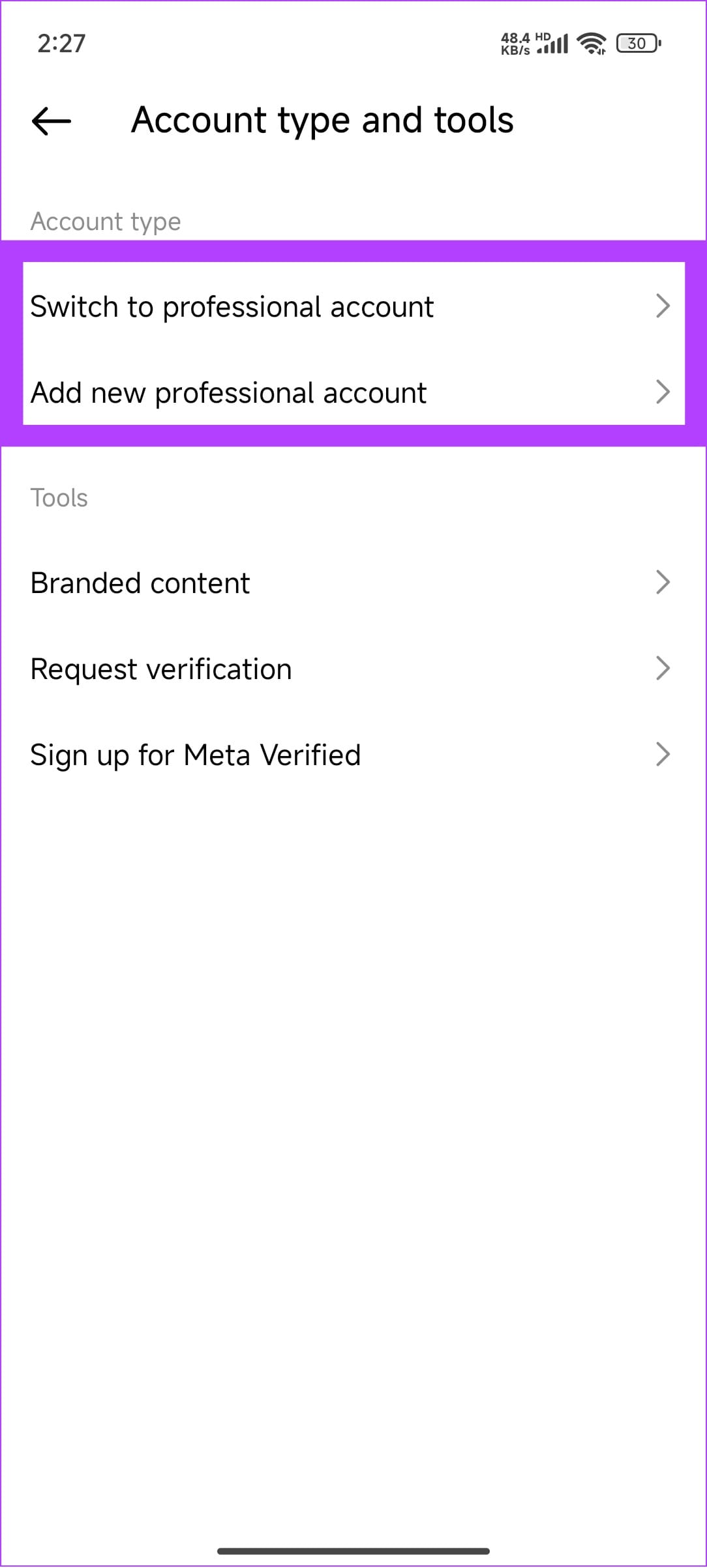 有时,Instagram 会针对特定类型的帐户推出新功能。这意味着您可能会在个人帐户中获得一些功能,在专业或企业帐户中获得一些功能。所以,你可以在 Instagram 业务之间切换或专业帐户来获取它们。方法如下。
