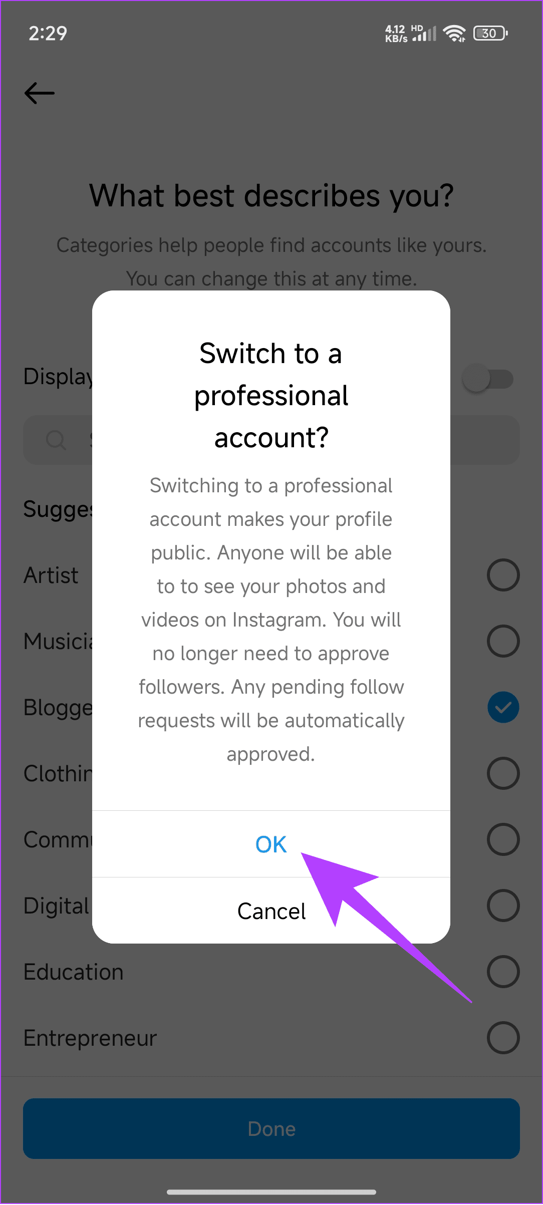 笔记:如果您有私人帐户,则必须将其转换为公共帐户才能使其成为专业或商业帐户。