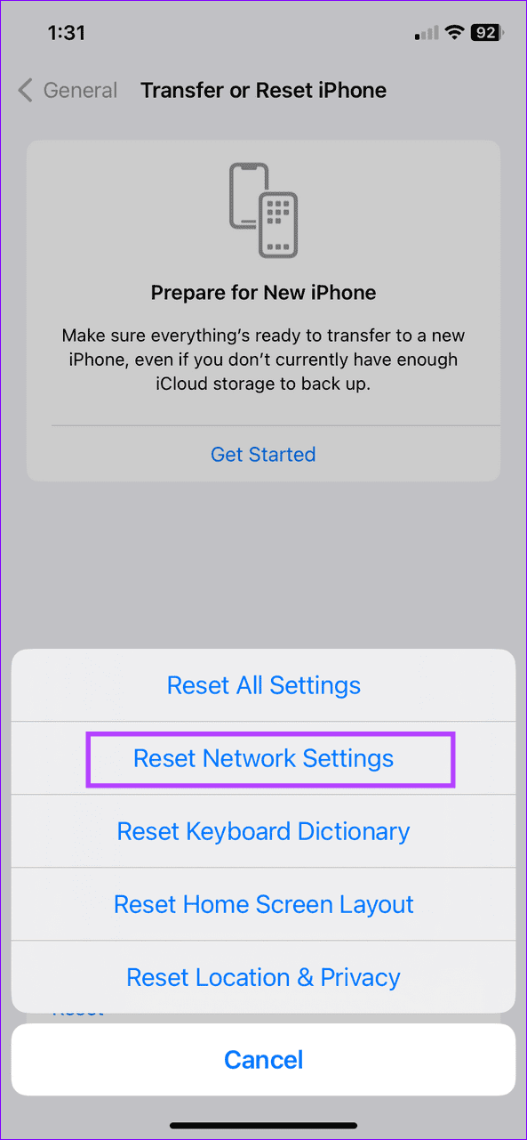 我们推荐的最后一个解决方案是重置 iPhone网络设置。这会将您的所有无线网络设置重置为默认值,并且应该可以解决问题。我们建议仅当无法从上述解决方案中受益时才使用此选项。请注意,执行以下步骤后,您必须在 iPhone 上再次设置网络首选项: