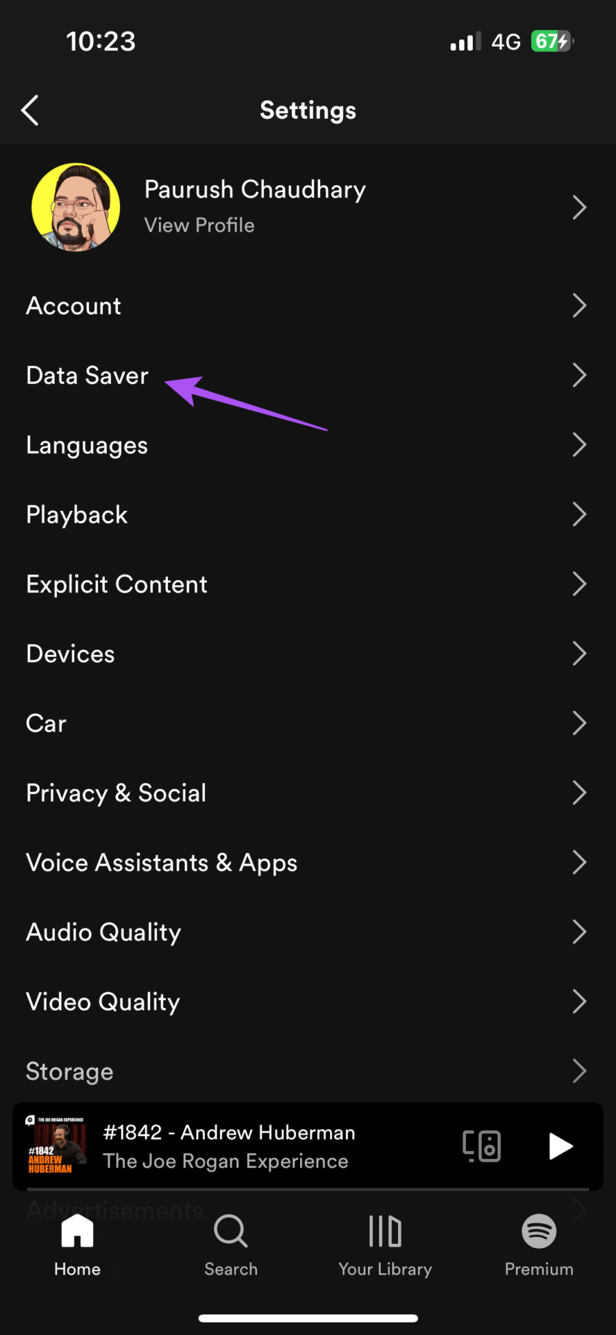 如果您的 Spotify 应用程序已停止显示专辑封面,我们首先建议检查该应用程序是否可以使用您的全部互联网带宽。 Spotify 应用程序有一个专用的数据保护选项来限制您的数据使用。我们建议关闭此功能,因为这可能是专辑封面未在 Spotify 上显示的原因。以下是禁用它的方法。