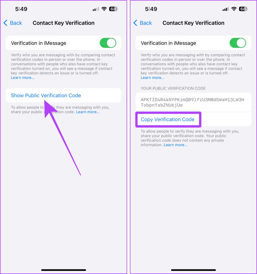 步骤5:CKV 现在将打开。为了确保这一点,请点击“显示公共验证码”以查看或分享您的验证码。