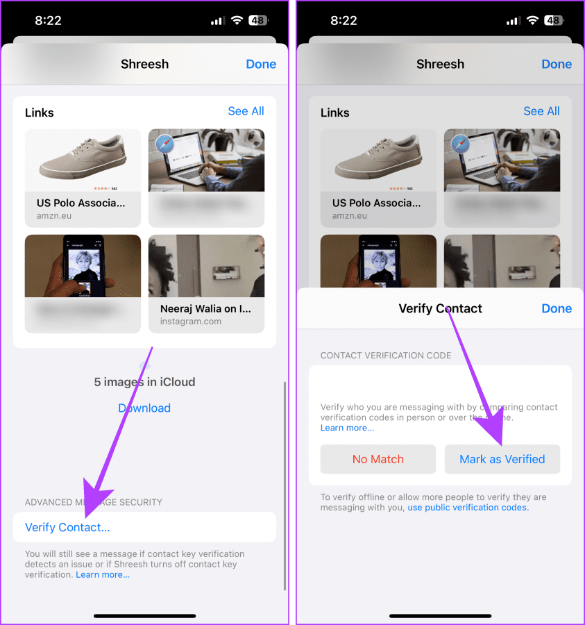 - 如果您或其他人出现任何问题,您(或其他人)将在 iMessage 中收到通知,并且可能需要再次重新验证联系人。