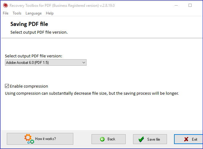 - 将恢复的数据保存到新的、格式正确的紧凑 PDF 文件中