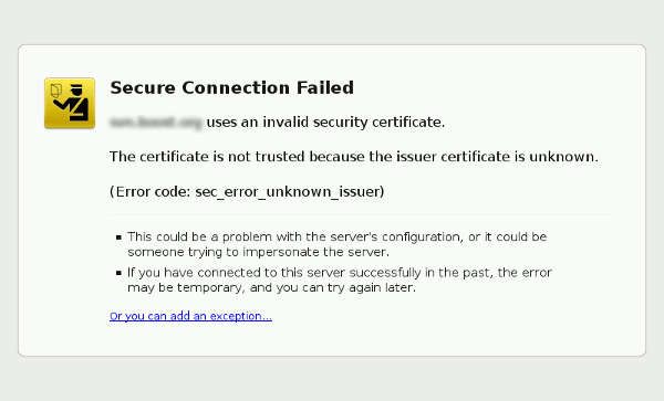 然后,您可以决定是否要“添加例外”并继续,或者离开该站点。