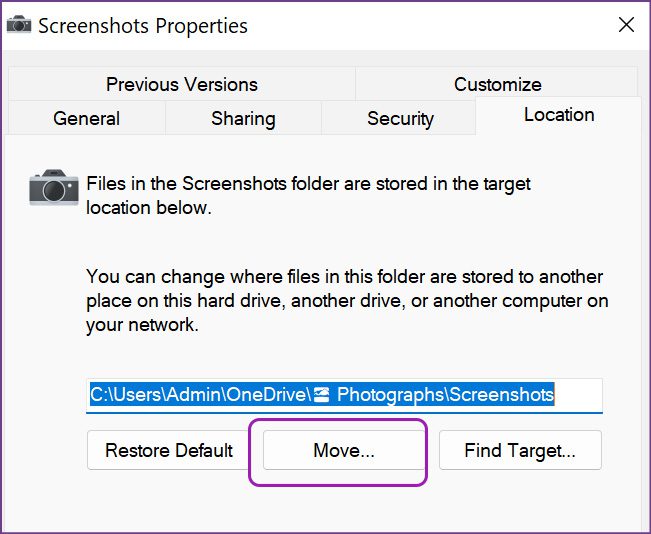 第6步:選擇移動,它將開啟 Windows 11 上的預設螢幕截圖位置。