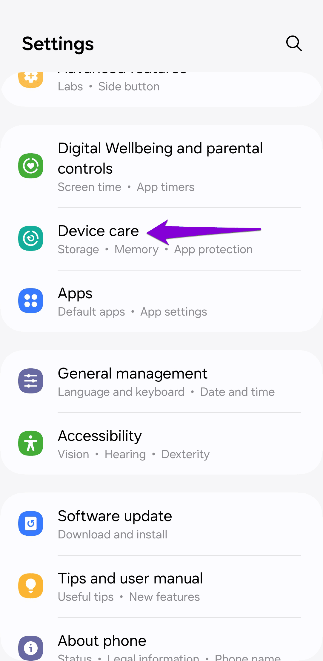 步驟一:打開設定在您的手機上 > 點擊設備保養.