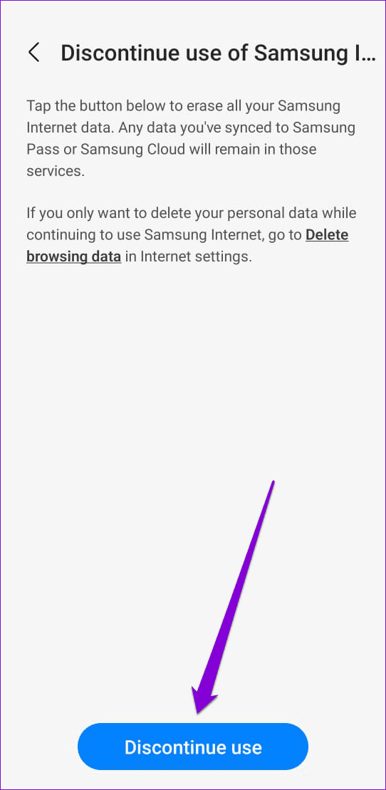 步驟一:在 Samsung 網路瀏覽器中,前往設定>停止使用三星互聯網.